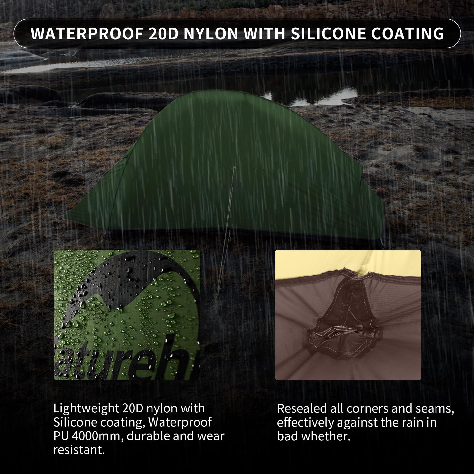 Naturehike Cloud-Up 2 Ultralight Tent Backpacking Tent for 2 Person Hiking Camping Outdoor (20D Forest Green Upgrade)