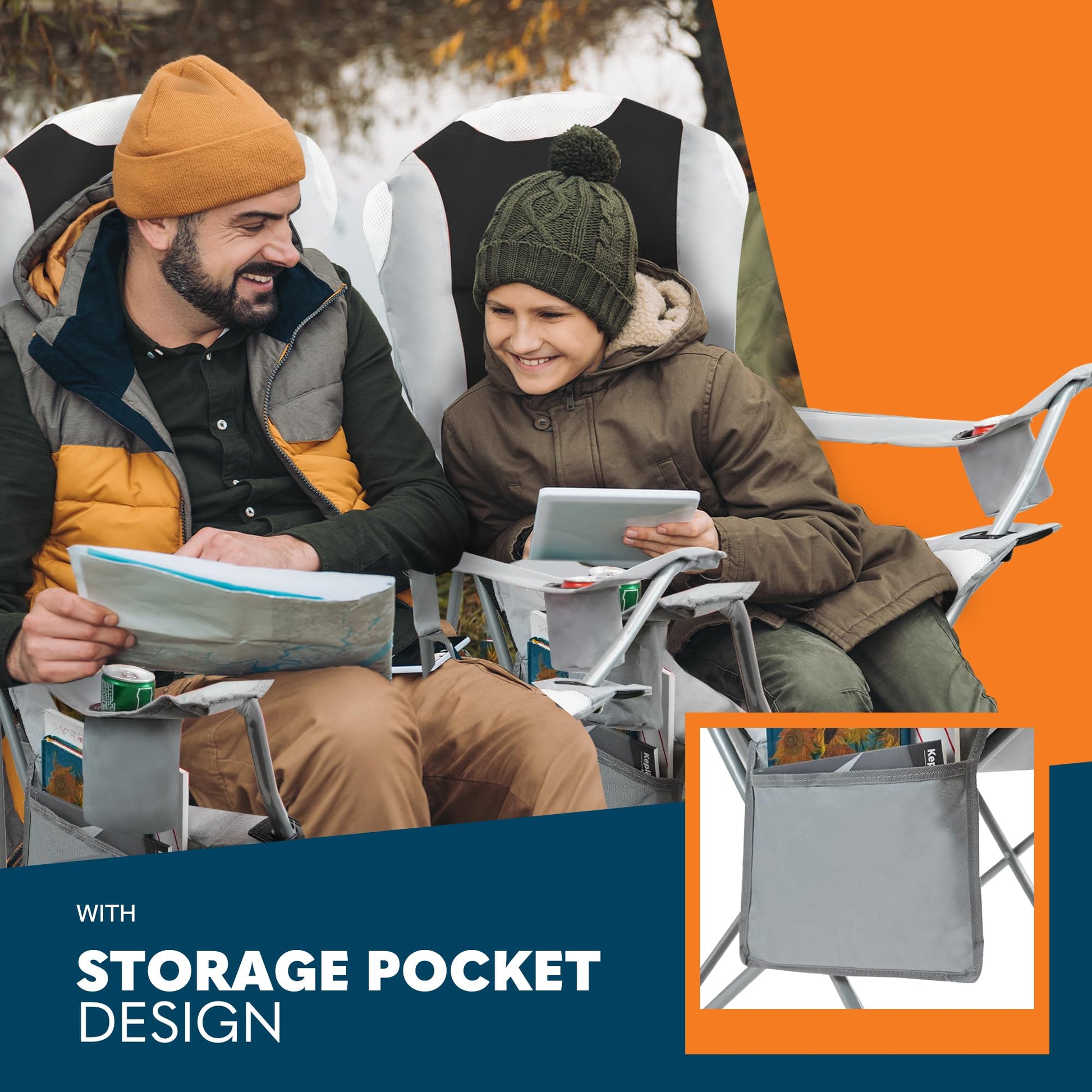 - MULTIFUNCTIONAL DESIGN - The multifunctional camping chairs provide you with different experiences closer to nature. Featuring cup holders and magazine bags, the chairs upgrade your time outdoors wherever you may be, either on the beach, fishing or picnic or more! Never limit your comfort in any type of adventure.